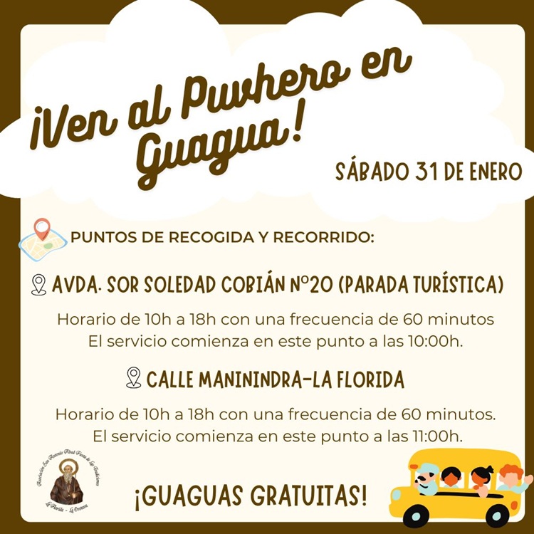 Así, uno de los principales actos, que cada año recibe a miles de personas, residentes y visitantes, es el del gran puchero, uno de los eventos gastronómicos más importantes de Canarias. Se estima que unas cinco mil personas degusten este gran puchero. Este año tendrá lugar el sábado 31 de enero, aunque el día anterior los vecinos se involucrarán en los preparativos - lavar la verdura, pelar las papas, cortar, picar…
