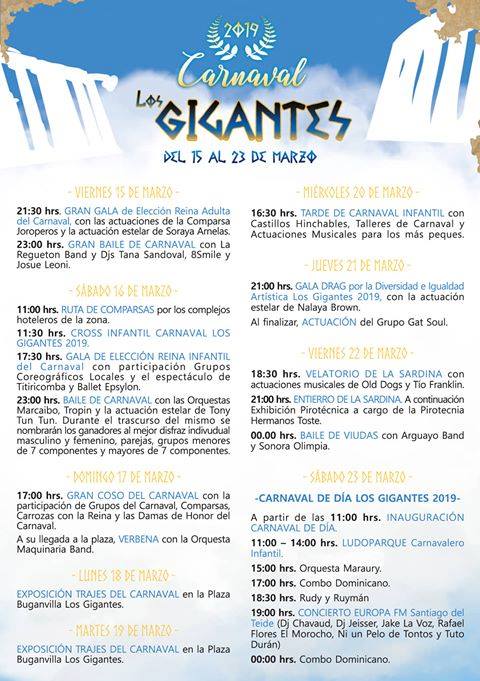 Carnaval de los Gigantes, el más antiguo del sur de la Isla, desde el 15 hasta el 23 de Marzo de 2019.