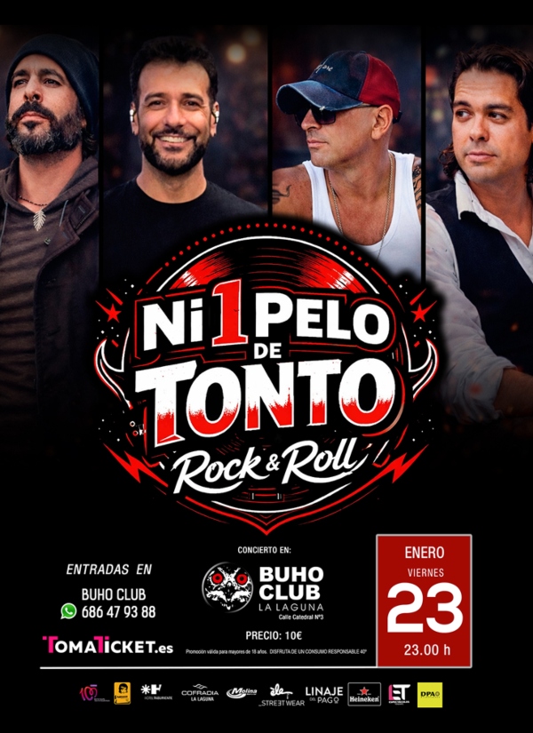 La banda canaria de rock & Roll NI 1 PELO DE TONTO actúa este viernes 23 de enero en la sala Búho de La Laguna. Será a las 23h