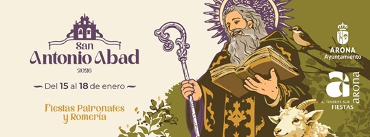 Fiestas de San Antonio Abad Data di inizio: giovedì 15 gennaio 2026 Data di fine: domenica 18 gennaio 2026 Posto: Arona Collegamento: Visita Facebook: Visita Contatti Telefono : 922 76 16 00 e-mail : portalweb@arona.org https://www.arona.org/Agenda/ctl/Grupo/mid/429?id=1796