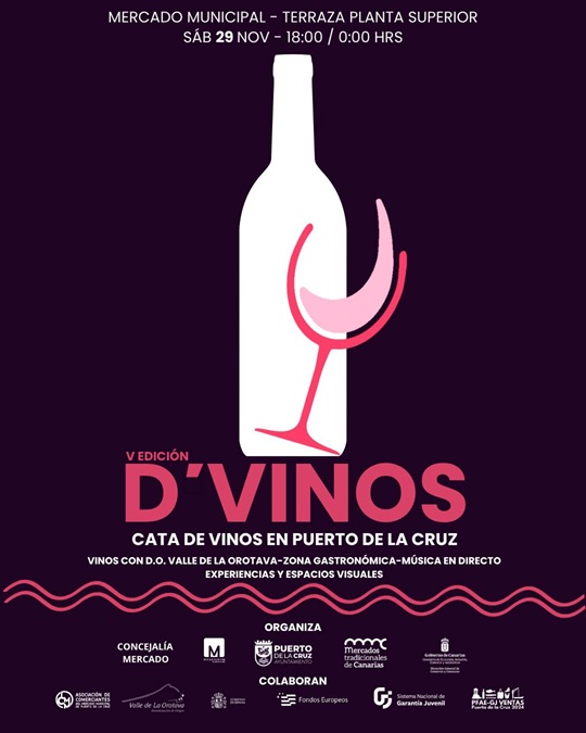 Vinos con D.O. Valle de La Orotava, zona gastronómica y música en directo.