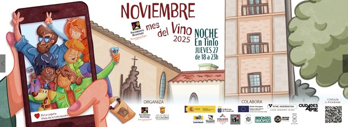 La XXII edición de ‘Noviembre, Mes del Vino’ ofrece en La Laguna un amplio programa de actividades que marida vino, gastronomía y cultura. Los visitantes podrán disfrutar de rutas guiadas, degustaciones, espectáculos, sorteos y promociones vinculadas a la Denominación de Origen Tacoronte-Acentejo.