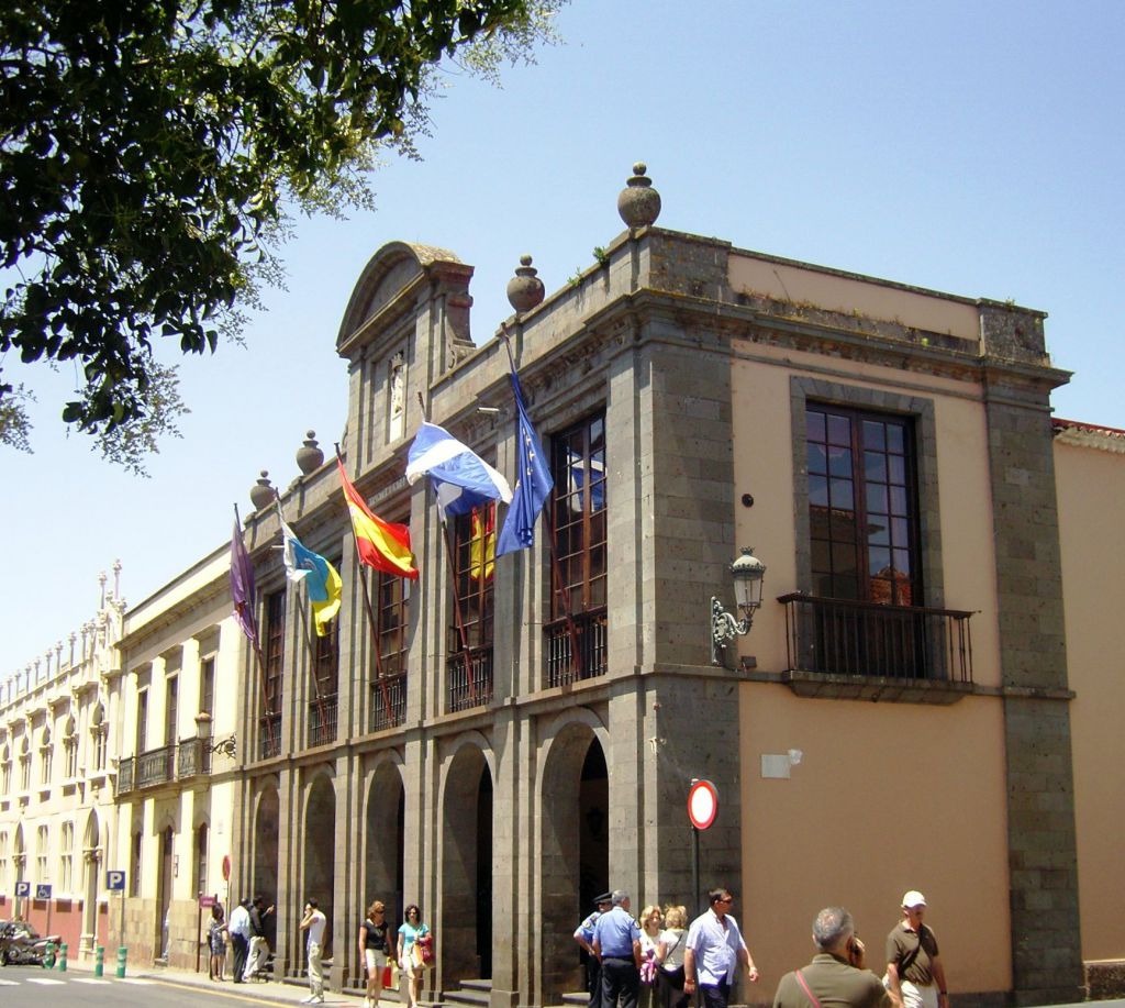 Ostenta en el frontispicio el escudo de armas de Carlos V y a ambos lados, los de Tenerife y del gobernador de la isla Jerónimo de Sotomayor. El salón de sesiones públicas posee un rico artesonado en estilo mudéjar canario. Conserva importantes reliquias, como: El estandarte que enarbolara el Adelantado Alonso Fernández de Lugo cuando conquistó Tenerife para la Corona de Castilla; la Real Cédula del año 1510 de la Reina Doña Juana La Loca, por la que concede a La Laguna el título de Villa; el escudo de armas, que es también el de la Isla de Tenerife; el Archivo Histórico es uno de los más completos de Canarias.