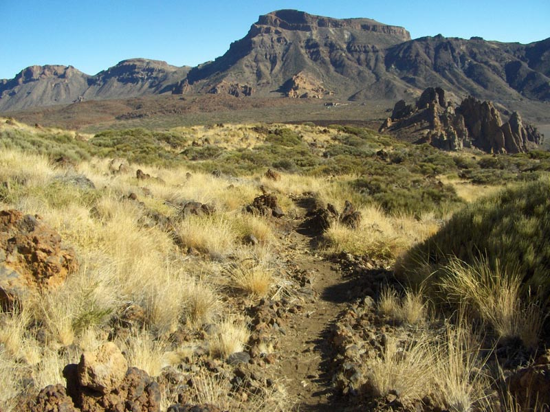 Descripción: Camino que conecta la parte superior del sendero 3 Roques de García, con el sendero 9 Teide – Pico Viejo – TF38 en la Degollada de Pico Viejo, también conocida como Degollada de Chahorra. Es un sendero que requiere cierta preparación, ya que realiza un fuerte ascenso en alta montaña, llegando a los 3.058 mts. de altura. A lo largo del mismo se aprecia como la vegetación de alta montaña poco a poco va cambiando según se asciende hasta encontrar sólo retamas con portes muy achaparrados en la parte alta del recorrido. Es un sendero muy interesante para observar las diferentes formas de lava que pueden salir en las erupciones volcánicas. Algunos tramos del sendero pasan sobre estas lavas y exigen un mayor esfuerzo al caminante debido a las características de las mismas, con rocas sueltas y con bordes afilados.