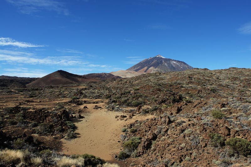 Descripción: Ruta recorrida tradicionalmente por los habitantes de la isla desde tiempos de los guanches (antiguos pobladores); es un tramo del antiguo Camino Real de Chasna, usado desde la época prehispánica para cruzar del norte al sur de la isla. Discurre a lo largo de la base de la pared de la Caldera de Las Cañadas, en su parte oriental. Destaca en su primer tramo la vegetación con la presencia del tajinaste picante de hermosa floración azul. Bajo la pared de Las Cañadas se aprecia la diversidad geomorfológica, como ejemplo junto a la Cañada de Diego Hernández se observan las franjas de coladas negras basálticas, mientras que las de materiales amarillentos corresponden a magmas ácidos emitidos en erupciones violentas. En la vegetación de los escarpes sobresale el tajinaste rojo, cuyas inflorescencias alcanzan en ocasiones los tres metros de altura. En el tramo final, se levanta El Capricho con formas de gran belleza. El Capricho, lugar conocido por el nombre de las "Piedras Amarillas", es un cerro de color ocre-amarillento, compuesto por capas de piroclastos sálicos con alteraciones hidrotermales; en estos relieves se encuentran algunas de las rutas de escalada más importantes de Tenerife. En todo el recorrido encontramos restos de refugios pastoriles y diferentes vistas del Teide. Este sendero (4), normalmente partiendo desde Cañada Blanca, y el de la Degollada de Guajara (5) se utilizan para ascender hasta esta cima. Este Sendero de Siete Cañadas puede enlazarse en su inicio o final con la guagua (nombre local del autobús) al existir paradas en el Portillo y en el Parador Nacional de las líneas 342 y 348 (consultar previamente los horarios en www.titsa.com)