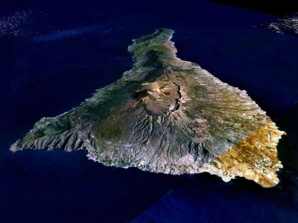 La isla de Tenerife desde el Oeste (foto de la NASA); se ve el Teide en el centro.